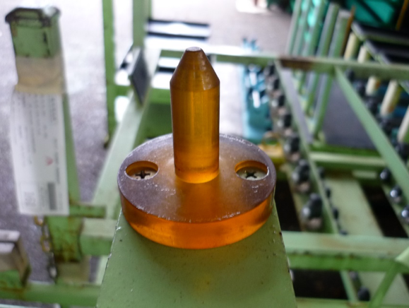(3)型から取り出して、オーバーフローした部分を切削機械で削ってウレタン注型品が完成します。